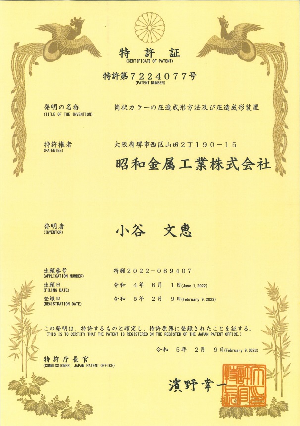 この度、弊社開発の「圧造完結品」が、モノづくり日本会議/日刊工業新聞社が主催する「“超”モノづくり部品大賞」において「奨励賞」を受賞しました。